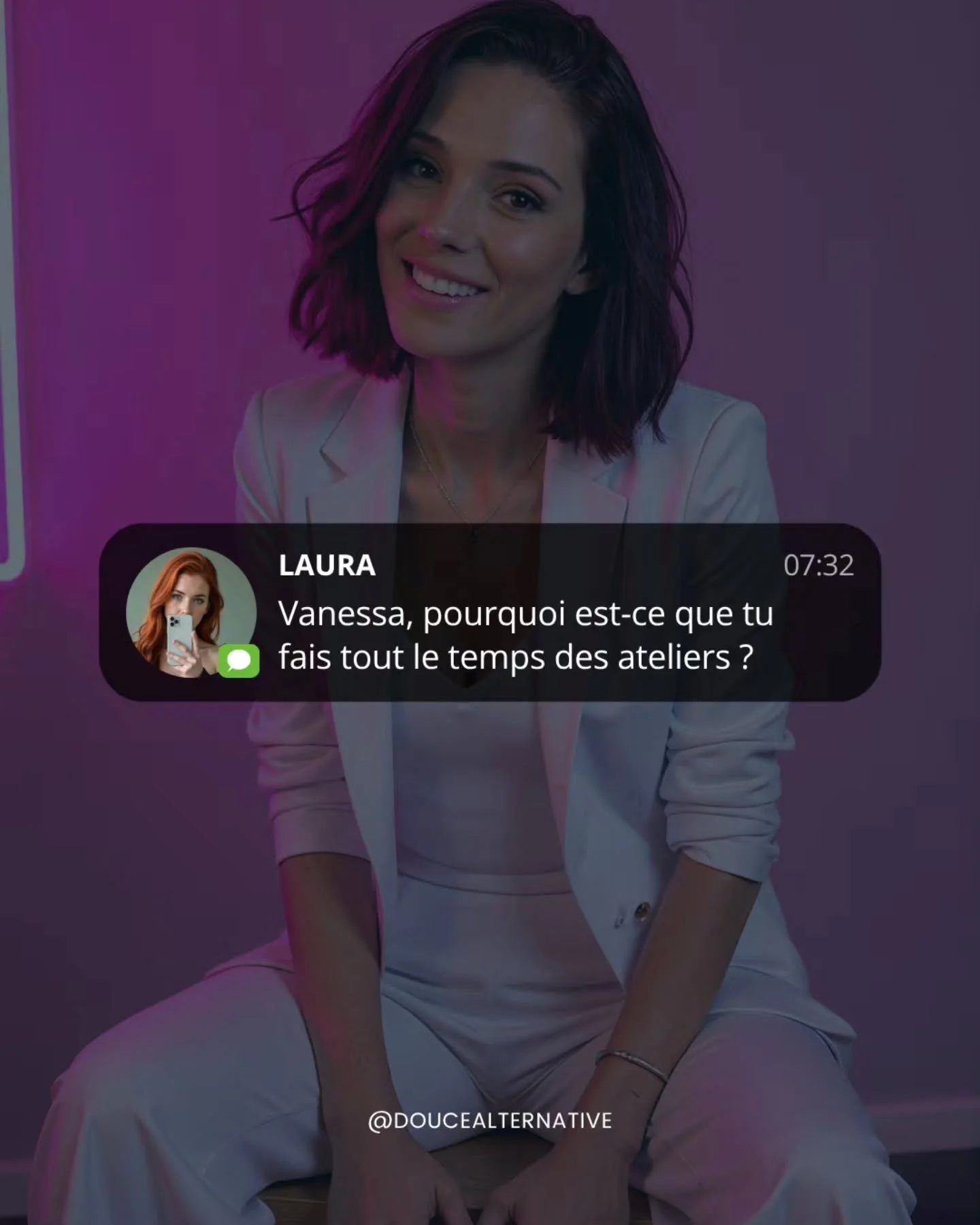 Quelques mois plus tard, Douce Alternative est née. Avec un CDI en poche pour sécuriser cette transition, j’ai pu commencer à construire mon projet. Mon objectif ? Aider les entrepreneures à se libérer du poids des stratégies marketing compliquées, avec une approche plus simple et plus éthique.